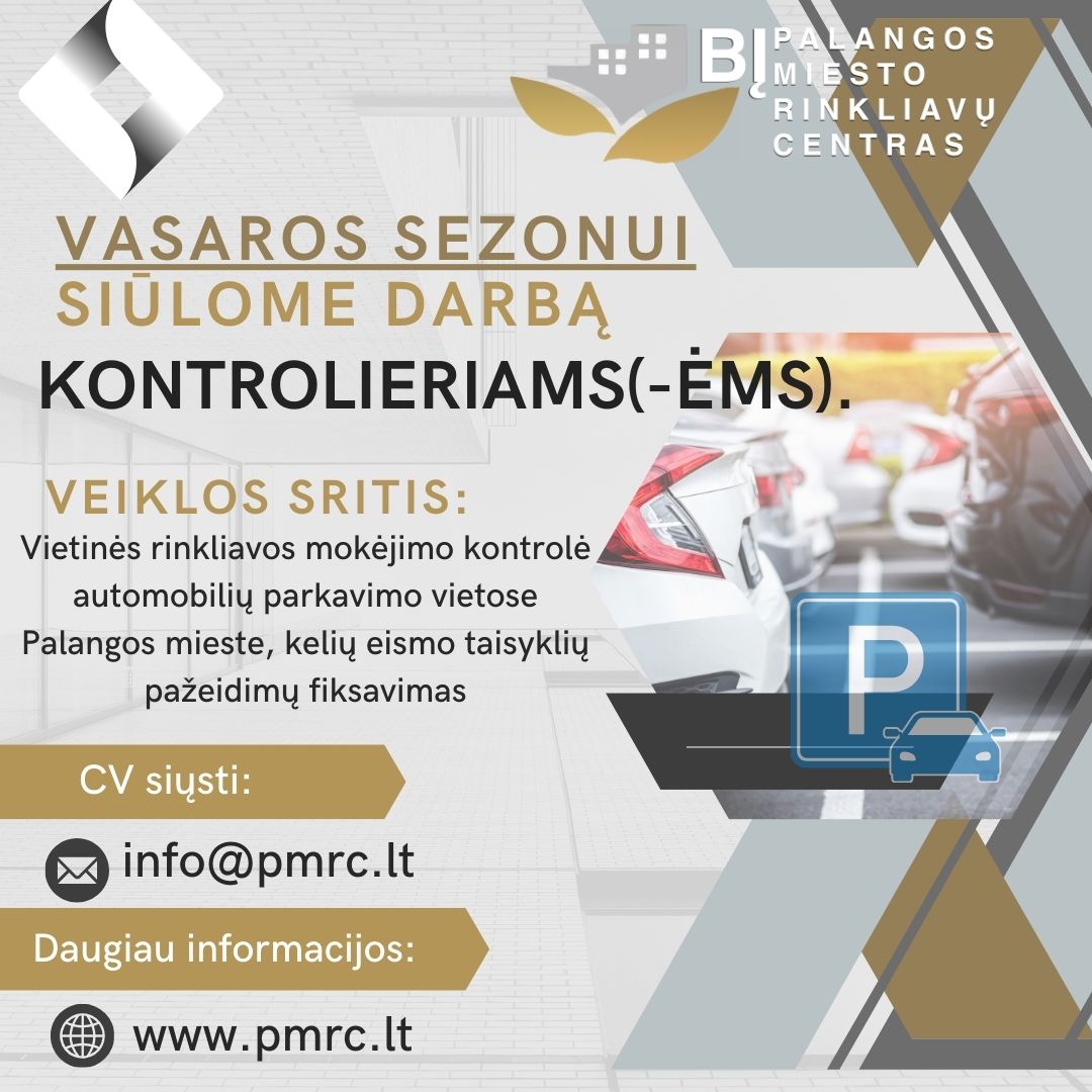 BĮ Palangos miesto rinkliavų centras kviečia į savo komandos gretas vasaros sezonui prisijungti Kontrolierius (-es)